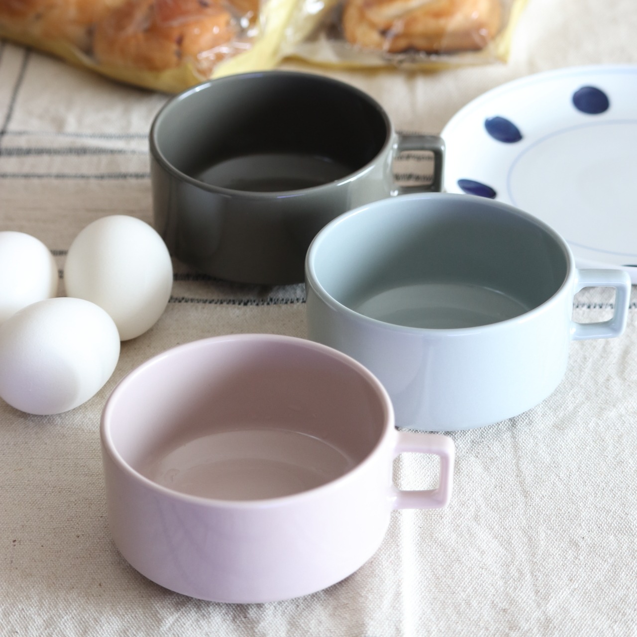 料理が映えるやわらかな色合いのスープカップです。