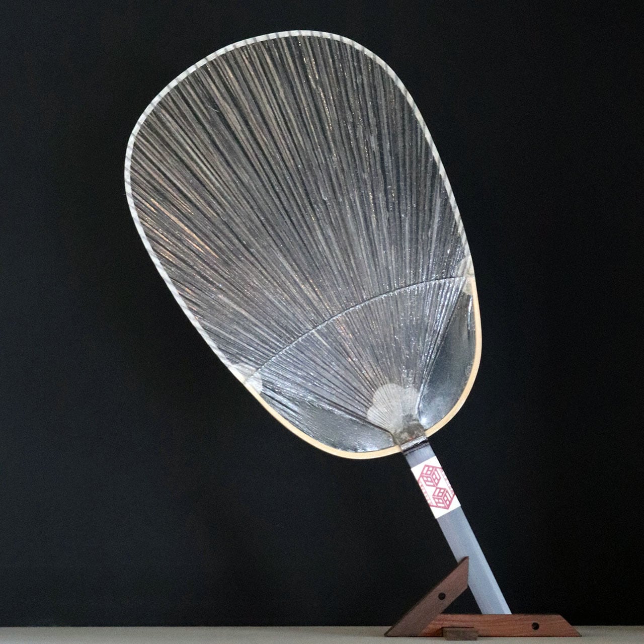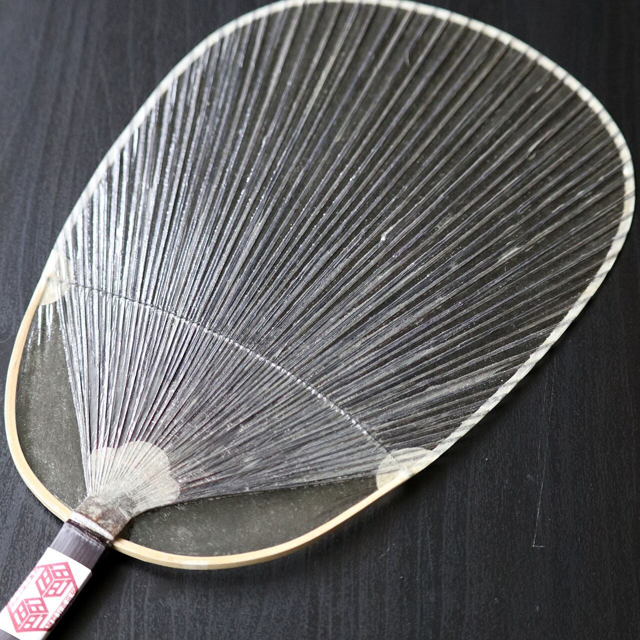 この水うちわは、雁皮紙(かんぴし)と呼ばれる植物から作られた薄い和紙を貼り合わせ、撥水性のある特殊な天然ニスを塗って仕上げてあります。