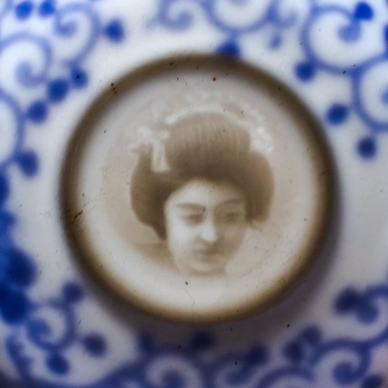 カップの底面に特別な細工があり、光にかざすと舞子さんの顔写真が浮かんで見えます。